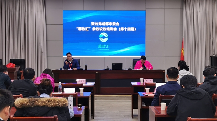 培训班班长、第八届市参政议政专委会主任彭怡岚主持会议并作参政议政工作经验交流与分享。活动邀请了市参政议政专委会(第六届)原主任、成华区支部副主委沈尤,市参政议政专委会(第七届)原主任、成华区支部副主委付少杰,以及第八届市参政议政专委会委员代表分别作参政履职工作的交流发言。